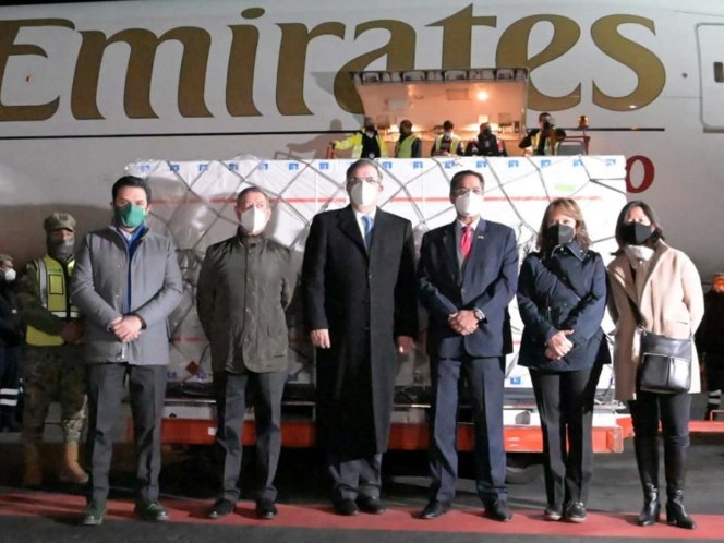 El canciller Marcelo Ebrard destacó que con este embarque se cuenta ya con dos fuentes de abastecimiento del …